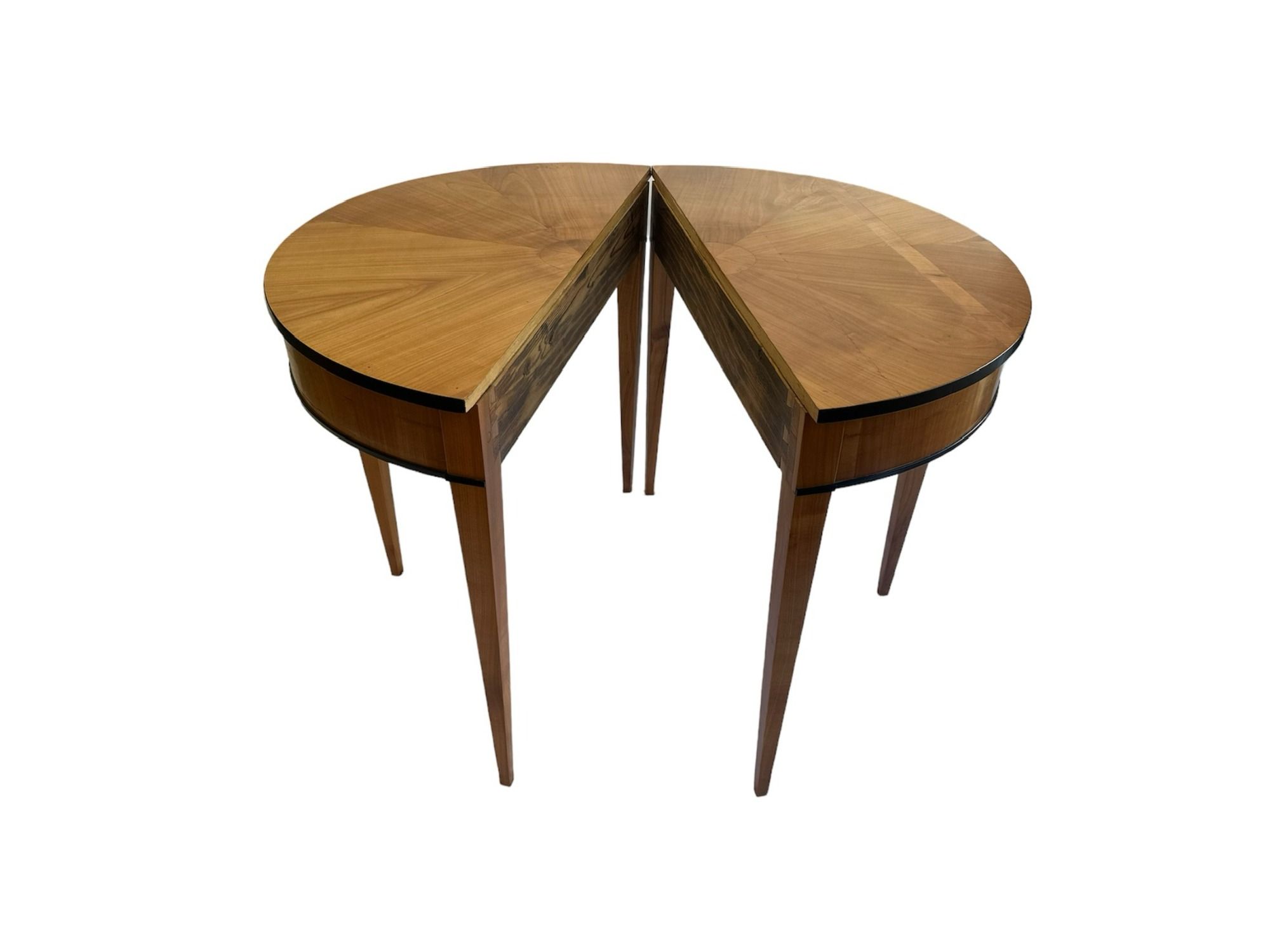 Paar Konsolentische Demi-Lune, Kirschbaum