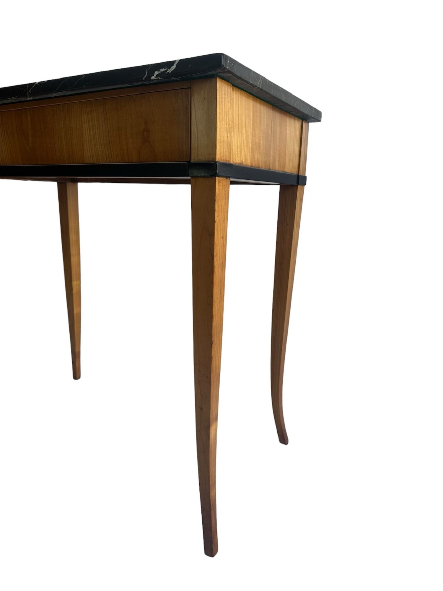 Kirschbaum furniert und massiv. Mit versteckter, unauffälliger Schublade sowie einer Marmor Platte.